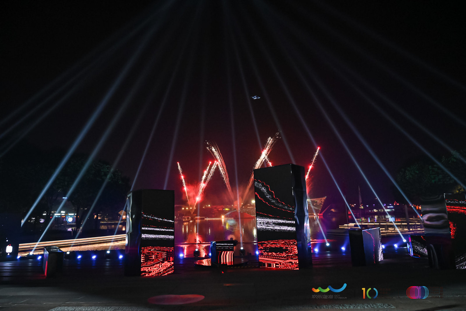此次光影主題活動特邀深圳歌劇舞劇院首席舞者、國家一級演員張婭姝,以抒情、搖滾、爵士、歌舞、表演等多樣化的演藝形式原創編排沉浸式音樂情景劇《餘音繞樑》、以現代舞和接觸即興的舞蹈形式創編雙人舞《水霧》、以現代舞結合肢體元素創編舞蹈《52赫茲的鯨》,表演者們在歡樂海岸的「皓夜逐夢」光影藝術裝置之間起舞歌唱,詮釋藝術賦能科技的人文魅力。