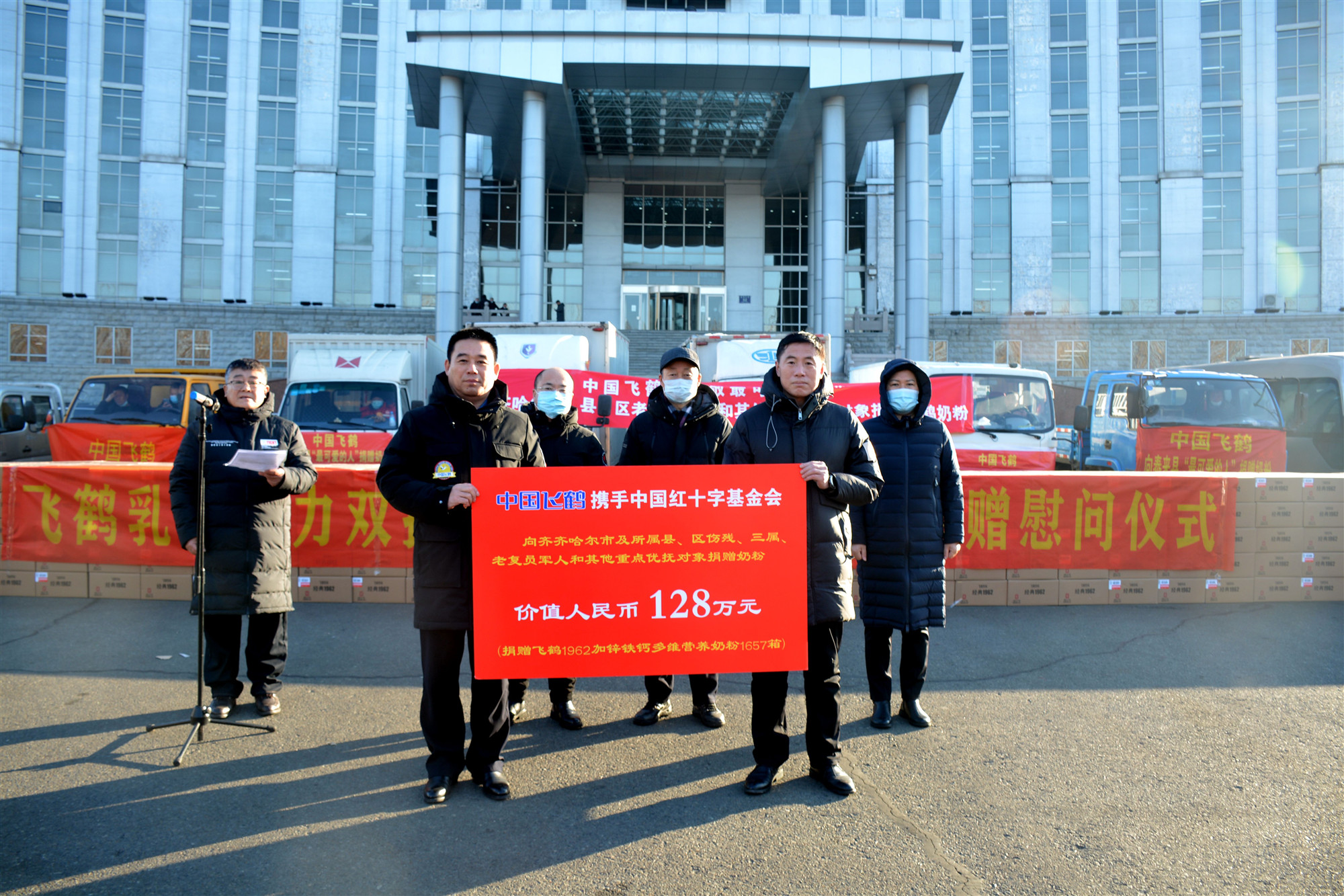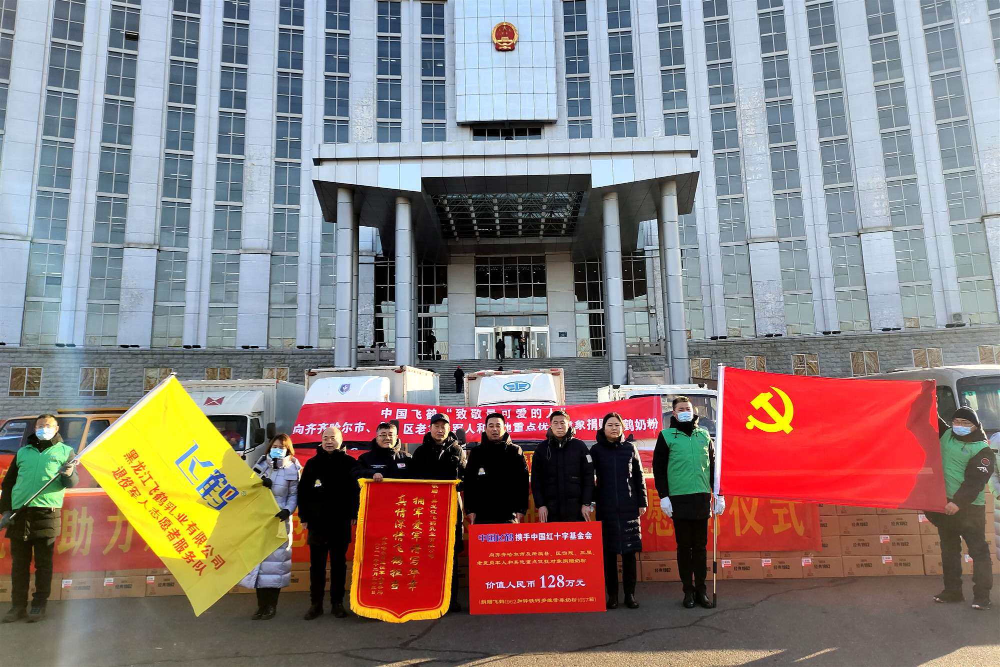 齊齊哈爾市及所屬縣、區傷殘、三屬、老復轉軍人和其他重點優撫對象捐贈價值128萬元的飛鶴奶粉