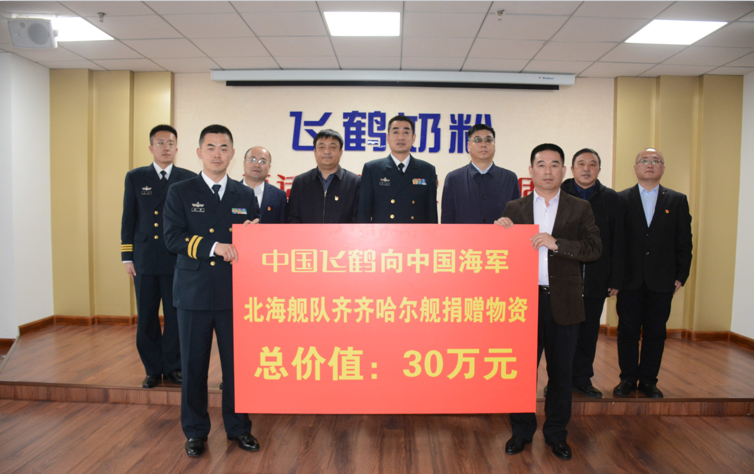飛鶴乳業向齊齊哈爾艦隊官兵捐贈價值30萬物資