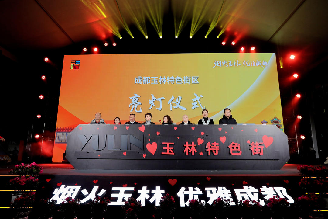 「煙火玉林,優雅成都」亮燈儀式,把此次開街儀式的氣氛推向最高潮!在燈光的映襯下,煙火玉林更加優雅迷人。在幸福街區體驗活動現場,美食集市營造的夜間消費新場景人頭攢動,國際美食及玉林本土老字號美食讓吃貨們直呼過癮;東路街頭互動演出、西廣場沉浸式演出,打破舞台邊界,讓市民、遊客、居民、商戶都充分參與到開街活動中,共同慶祝玉林特色街區的華麗煥新。