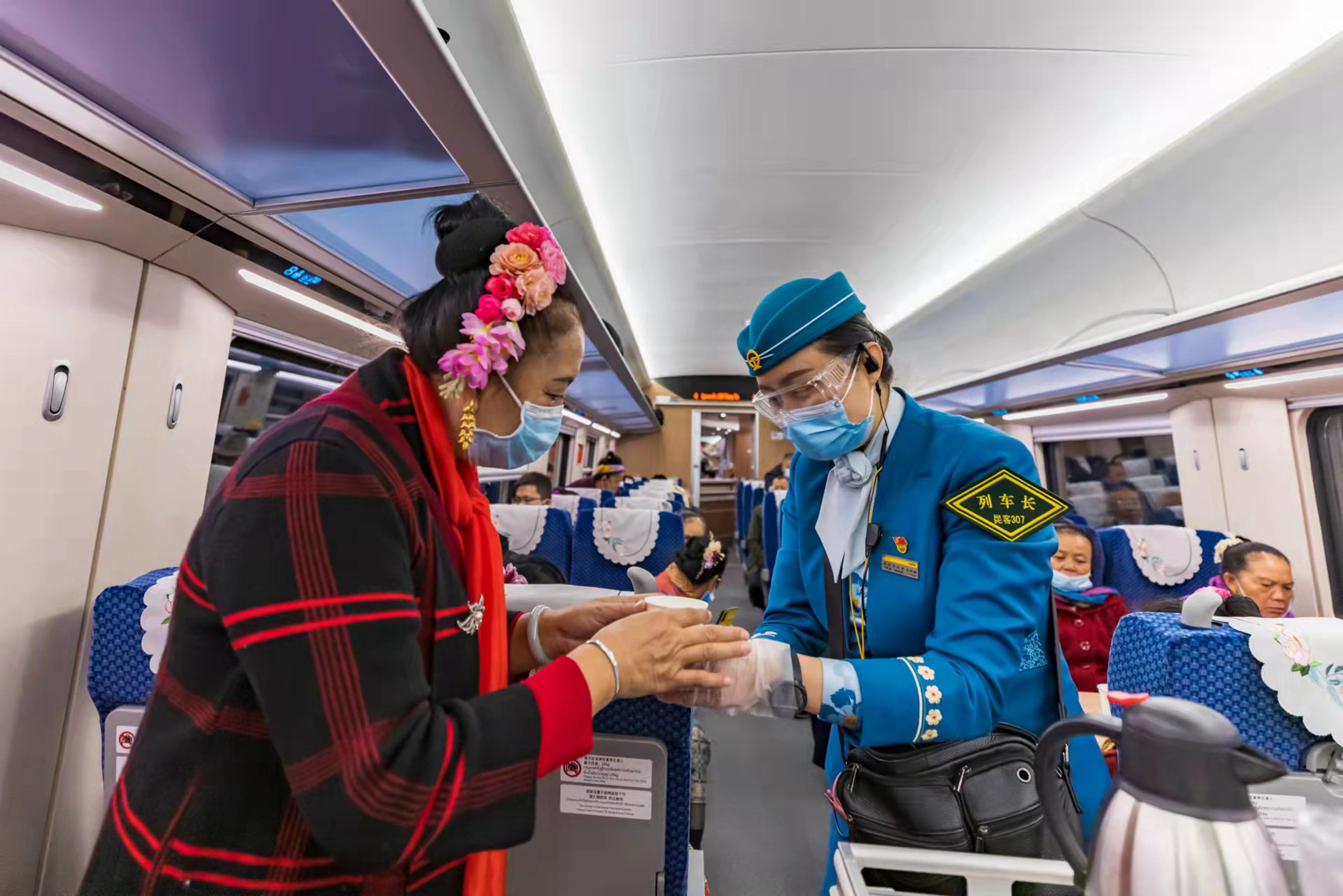 一卡通、計次票、互聯網訂餐,旅客在車上可以吃到燜肉米線、炸牛奶等雲南特色小吃,在覆蓋雲南全省16個州市125個區縣的客票代售點、高鐵無軌站可以就近購票、乘車。