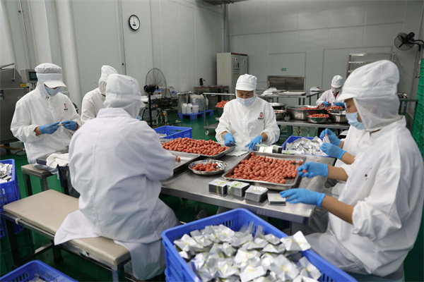 談到產業項目建設發展時,榮軍介紹,近年來拜泉縣深入實施「農業立縣、工業興縣、產業強縣」戰略,突出發展糧食加工、食品加工、畜牧業三大主導產業,初步形成了具有較好發展前景的鏈條化現代產業體系。以東方希望生豬繁養加銷、昌之夢現代肉牛養殖等項目為牽引,建立了「肉」「食」一體化的繁養加銷產業鏈;以棒星公司大豆拉絲蛋白及仿重組肉休閒食品、天潤公司鮮食玉米等項目為牽引,形成了「糧」「食」一體化的種儲加銷產業鏈;以飛鶴尚禾穀營養食品、飛鶴生態牧場為牽引,構建了「奶」「乳」一體化的飼養加銷產業鏈;以匯泉服裝產業園項目為牽引,建立起集紡織、印染、電商、物流於一體的服裝加工產業鏈。通過建鏈、強鏈、補鏈、延鏈,有力推動了全縣經濟社會高質量發展。