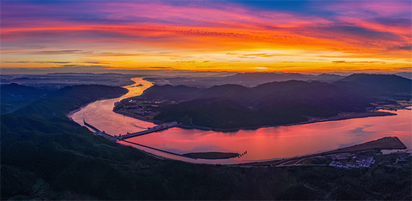 霞光下的峽江水利樞紐工程