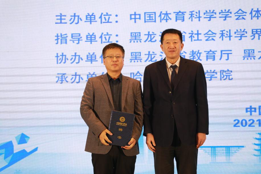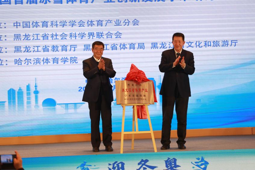 開幕式現場,黑龍江省社會科學界聯合會黨組書記、副主席劉德權先生,哈爾濱體育學院黨委書記蘭景力為黑龍江省體育產業學術交流基地揭牌。同時,蘭景力為戴健教授、鮑明曉教授、曹可強教授、李海教授、程文廣教授、白宇飛教授頒發聘書。