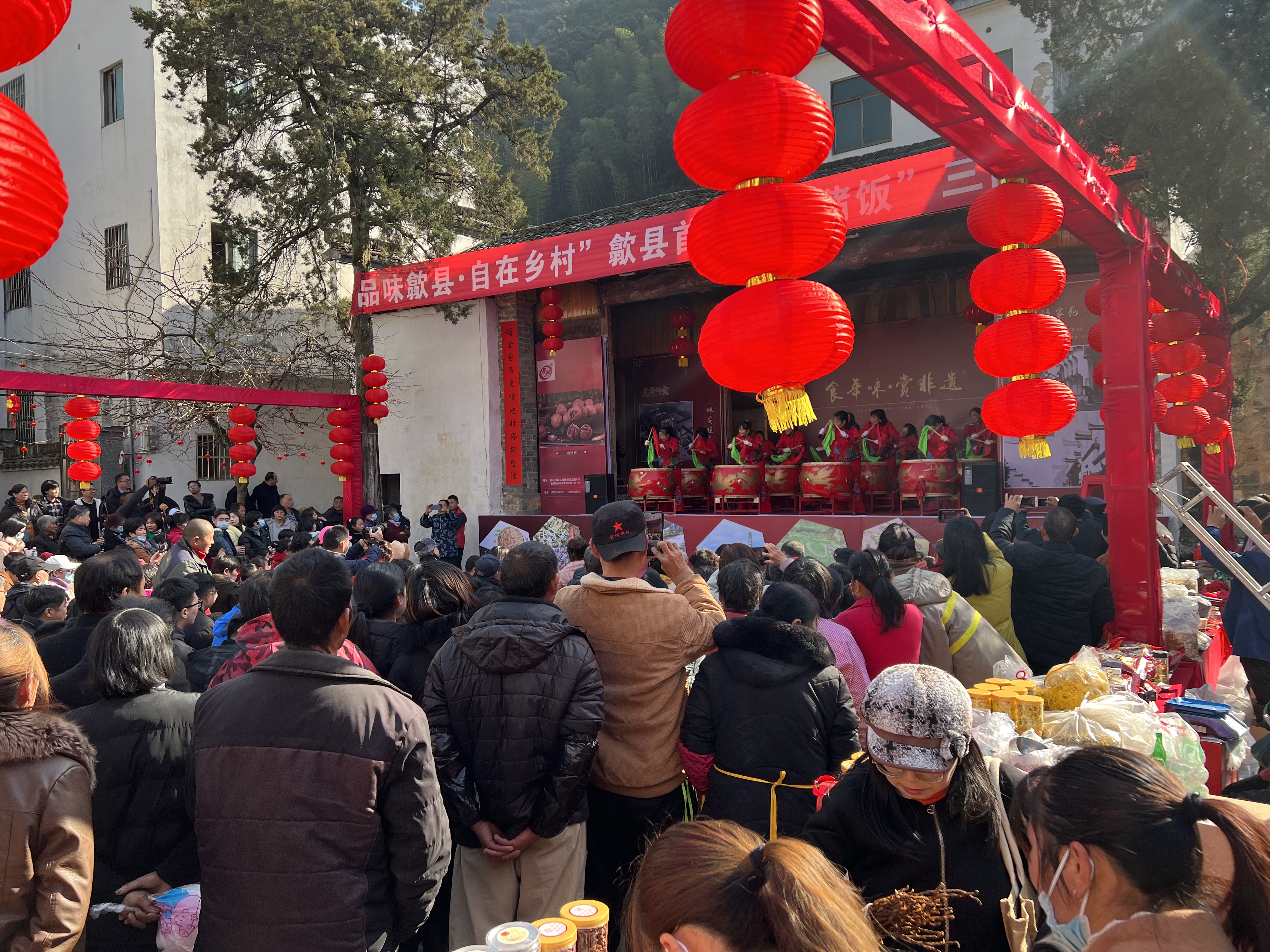 1月3日,在三陽鎮,“品味歙縣·自在鄉村”歙縣首屆“年豬飯”三陽分會場民俗推介活動熱鬧開幕,大家一起吃一頓年豬飯,看一場非遺羅漢表演,走一段徽杭古官道,感受鄉村年味,一起共度新年。
