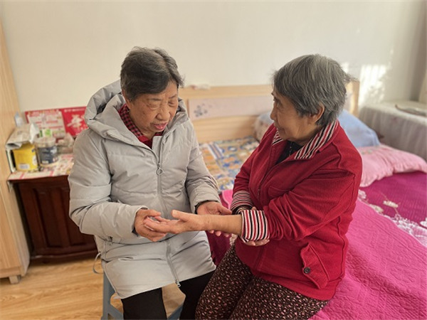 前不久,張阿姨的手因為骨質疏鬆導致骨折,陳阿姨看着很是心疼,主動幫助照顧張阿姨的生活起居,從買菜、買藥到做飯,從看病就醫到提醒按時換藥,陳阿姨忙前忙後,用真誠溫暖了空巢老人的心,從此他們兩家人的生活緊緊聯繫在一起。張阿姨不管有大事小事,都愛找陳淑蘭商量,化解了不少難心事、煩惱事。為了緩解張阿姨的手痛,陳阿姨還重新拿起書本,學習按摩護理知識,並按書本上的指導,幫張阿姨進行手部恢復。慢慢地,張阿姨的手有了好轉,現在已經能夠自己做些簡單的家務了。張阿姨逢人便夸是陳淑蘭的功勞,不僅讓自己的身體逐漸恢復好轉,心情也變好了,真心感謝老鄰居!