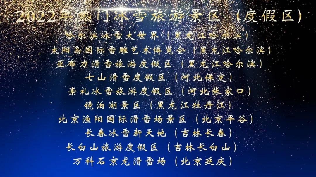 1月5日,中國旅遊研究院在「2022中國冰雪旅遊發展論壇」上,發佈了《中國冰雪旅遊發展報告(2022)》。根據報告研究成果,公佈了「2022年冰雪旅遊十佳城市」、「2022年冰雪經典創新項目」、「2022年冰雪時尚創新項目」和「2022年熱門冰雪旅遊景區(度假區)」榜單。哈爾濱市斬獲三張榜單的第一名,哈爾濱冰雪大世界榮膺「2022年熱門冰雪旅遊景區(度假區)」榜首。