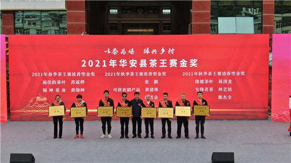 大會現場舉行了鄉村振興產業帶頭人、2021年華安縣春秋兩季茶王賽、制茶大師、鄉村金牌導遊、茶文化攝影大賽、「全宴華安」美食等頒獎儀式,現場表彰了一批在茶葉產銷、產業發展等方面的優秀代表。
