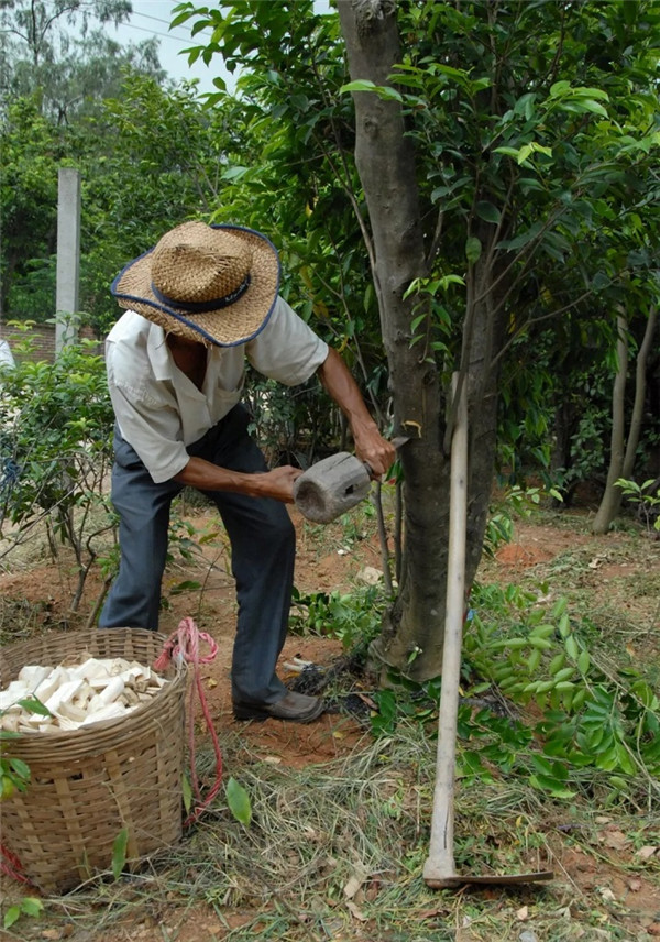 今雞翅嶺村,古為燕嶺村,原為余姓人居地。據史料記載,明洪武二十九年(公元1396年)湯氏九世祖湯細弟從新會古井遷居初到現村中黃坭冚,再遷燕嶺村定居,因村後燕嶺山形狀似雞翅,遂改名「雞翅嶺」沿用至今。湯細弟也是雞翅嶺記載引種莞香的第一人,也許那時湯細弟沒有想到,他種下的第一棵「女兒香」會成為湯氏一族的精神香火,會與千年之後的一個城市的名字、與昔日的小漁村今天的東方之珠的關係如此的緊密。