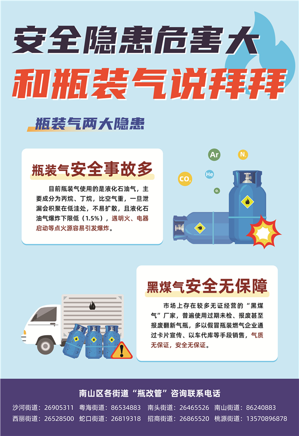 1月10日,《南山區全面實施「瓶改管」工作方案》正式印發,標誌着深圳市南山區「瓶改管」工作全面啟動。符合「瓶改管」條件的居民和業主,只需要「四步」就可以輕鬆和煤氣瓶說「拜拜」。
