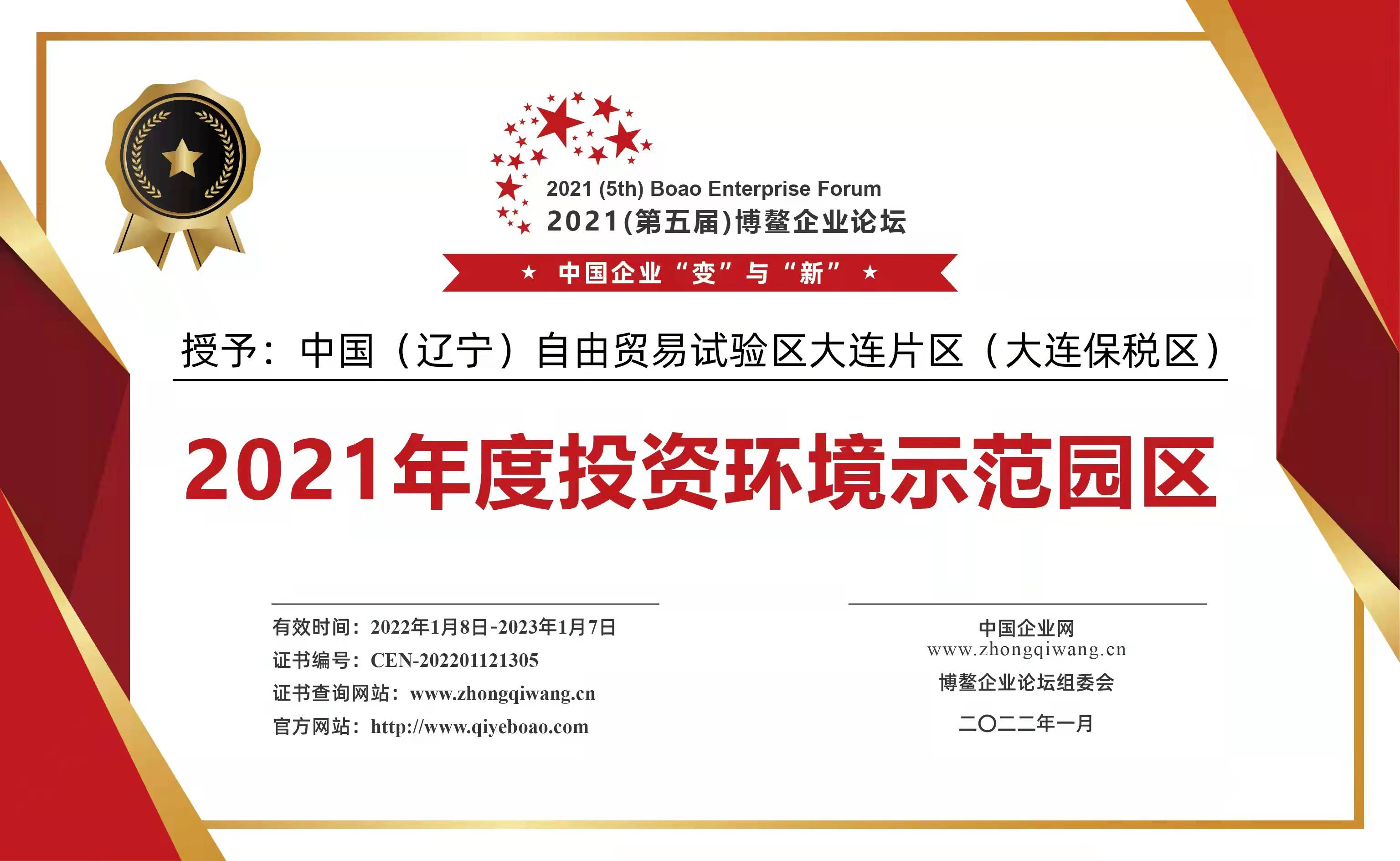 1月8日至9日,第五屆博鰲企業論壇暨2021亞洲經濟大會在海南博鰲隆重舉行。專家學者、各行業企業家代表匯聚一堂,共同交流探討如何把握新機遇,應對新挑戰,奮進新征程。大連自貿片區憑藉一流營商環境和投資潛力,在博鰲榮耀之夜頒獎典禮上榮獲「2021年度投資環境示範園區」獎項,體現了組委會對片區貿易投資自由化、便利化水平的認可和肯定。