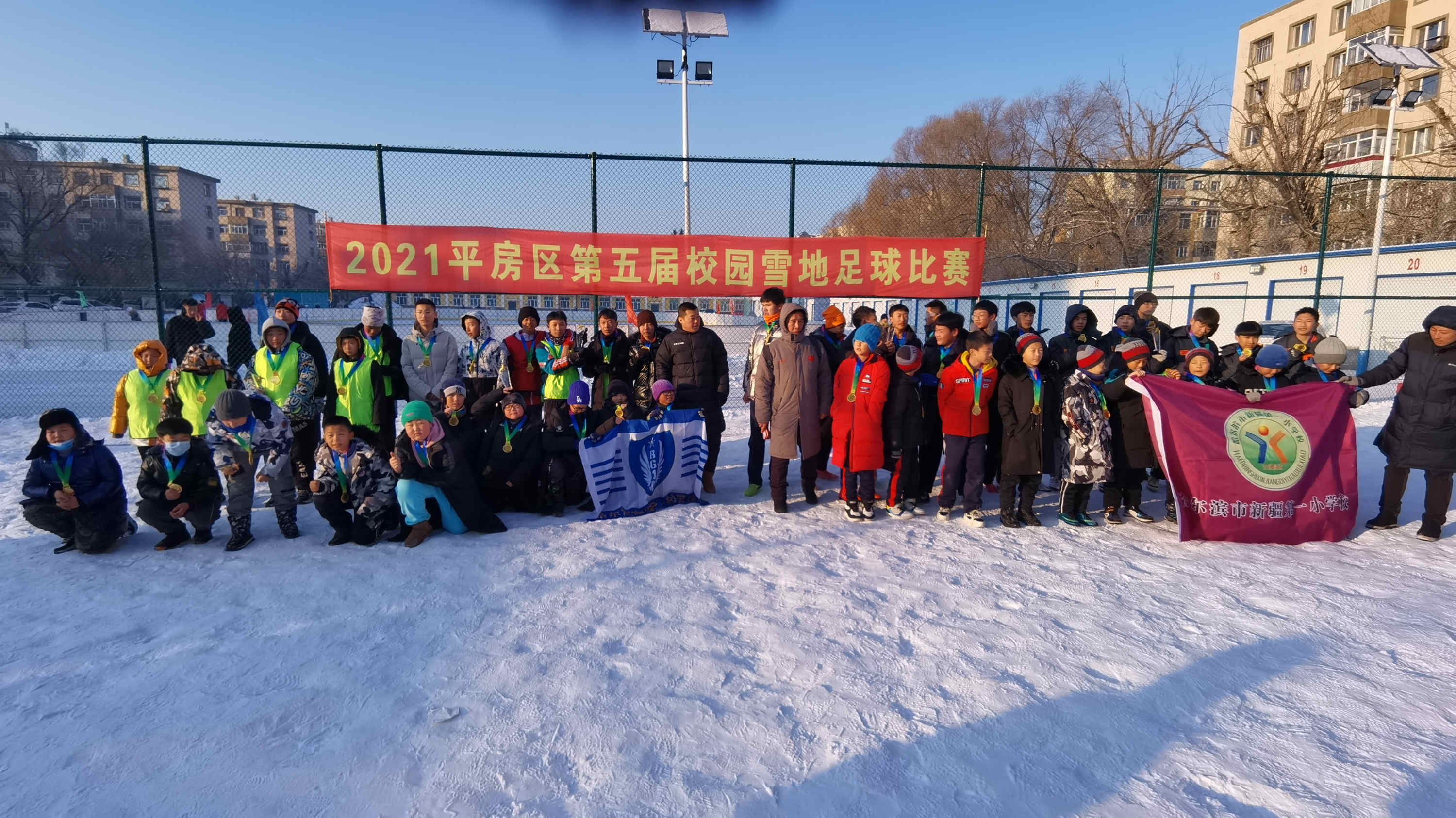 1月13日,2022年哈爾濱市平房區校園雪地足球賽圓滿落下帷幕。本次比賽共歷時4天,有區內17所中小學校、24隻隊伍、220餘人參加。