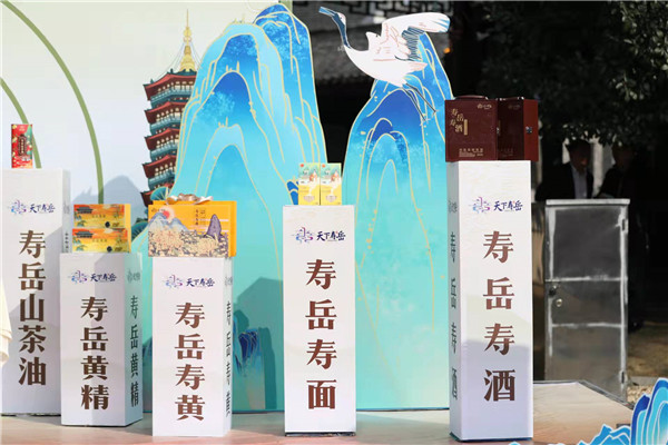 「天下壽岳」鄉村振興系列產品原產於南嶽區壽岳鄉,共有壽岳壽米、壽岳山茶油、壽岳壽紅(南嶽雲霧茶之紅茶)、壽岳壽黃(貴妃凰菊)、壽岳黃精、壽岳壽酒、壽岳壽麵、壽岳壽餅等8款基礎農特產品,及壽岳喜禮、中華壽禮等2款禮盒產品。其中,壽岳黃精微甜不澀、油潤軟糯,壽岳山茶油色澤金黃、氣味清香,頗受消費者喜愛。
