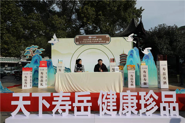 1月12日上午,衡陽市南嶽區發佈10款「天下壽岳」鄉村振興系列產品。壽岳鄉黨委書記周崇武向現場觀眾、直播間網友等20萬人推介該系列農特產品。