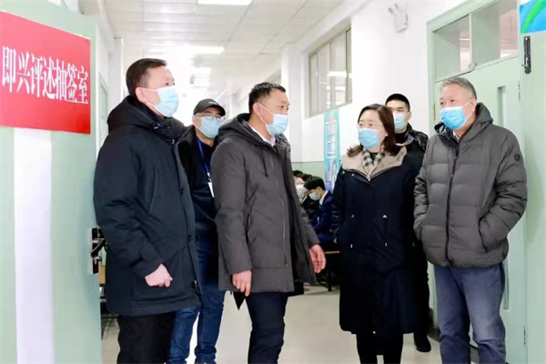 強添剛副院長、陳喜軍書記一行從入門測溫開始「走流程」,實地查看了備考室、考場、備用考場、隔離室、考務室、監控室及考場外圍環境,認真聽取了情況匯報,對黑龍江大學考務工作給予充分肯定,尤其對測溫、消殺、安檢、保暖、通行等細緻周到的考生綜合服務保障舉措給予高度讚揚。