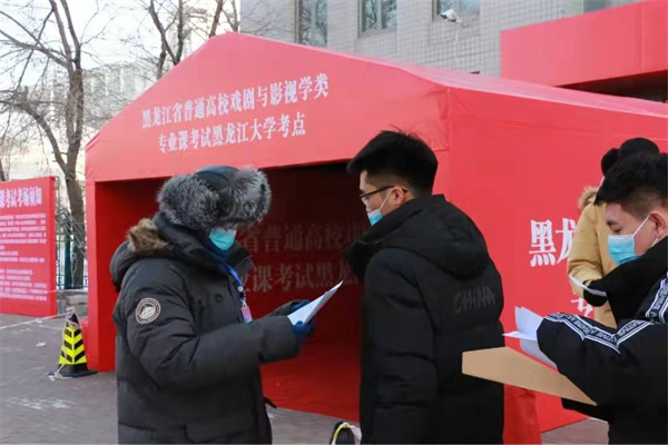 據悉,在本次考試中有兩名考生因腿部受傷乘坐輪椅赴考。在得知該情況後,黑龍江大學第一時間主動與考生對接,迅速建立起「一對一」服務聯繫,安排指定的考務工作人員抬着考生完成全程考試。溫情送考,用愛護航,黑龍江大學考點用實際行動為藝考「追夢人」保駕護航。儘管天氣寒冷,學校用貼心、暖心、熱心的助考服務與3315名考生間進行了一次愛的傳遞。
