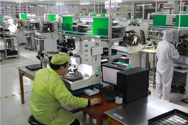 近日,在安徽黃山市廣遠光電科技有限公司車間內,操作工正在緊張地進行流水作業,200多名工人全部在崗進入滿負荷生產。