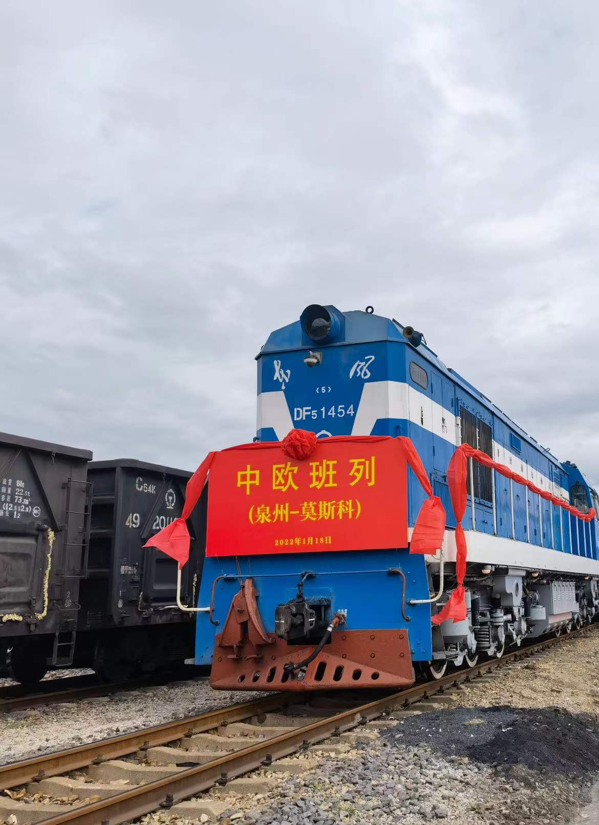 1月18日10時30分,伴隨着火車鳴笛,搭載50個40英尺貨櫃的75010/09次中歐班列從泉州東站緩緩駛出,一路向北將經由滿洲里口岸出境至俄羅斯莫斯科,標誌着中歐班列(泉州-莫斯科)成功首發。