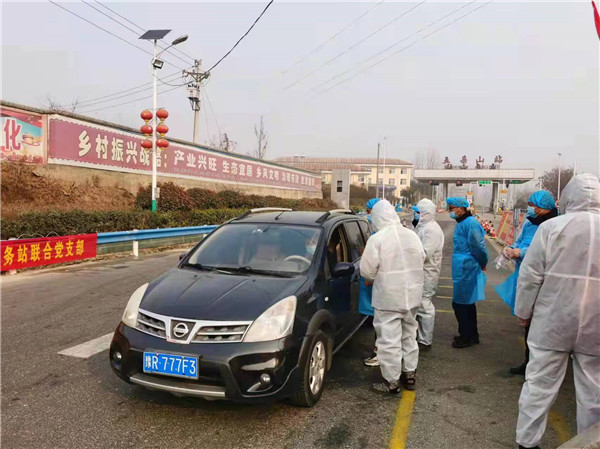 二廣高速南召縣五朵山高速路口聯合黨支部黨員幹部在查驗入境車輛和人員