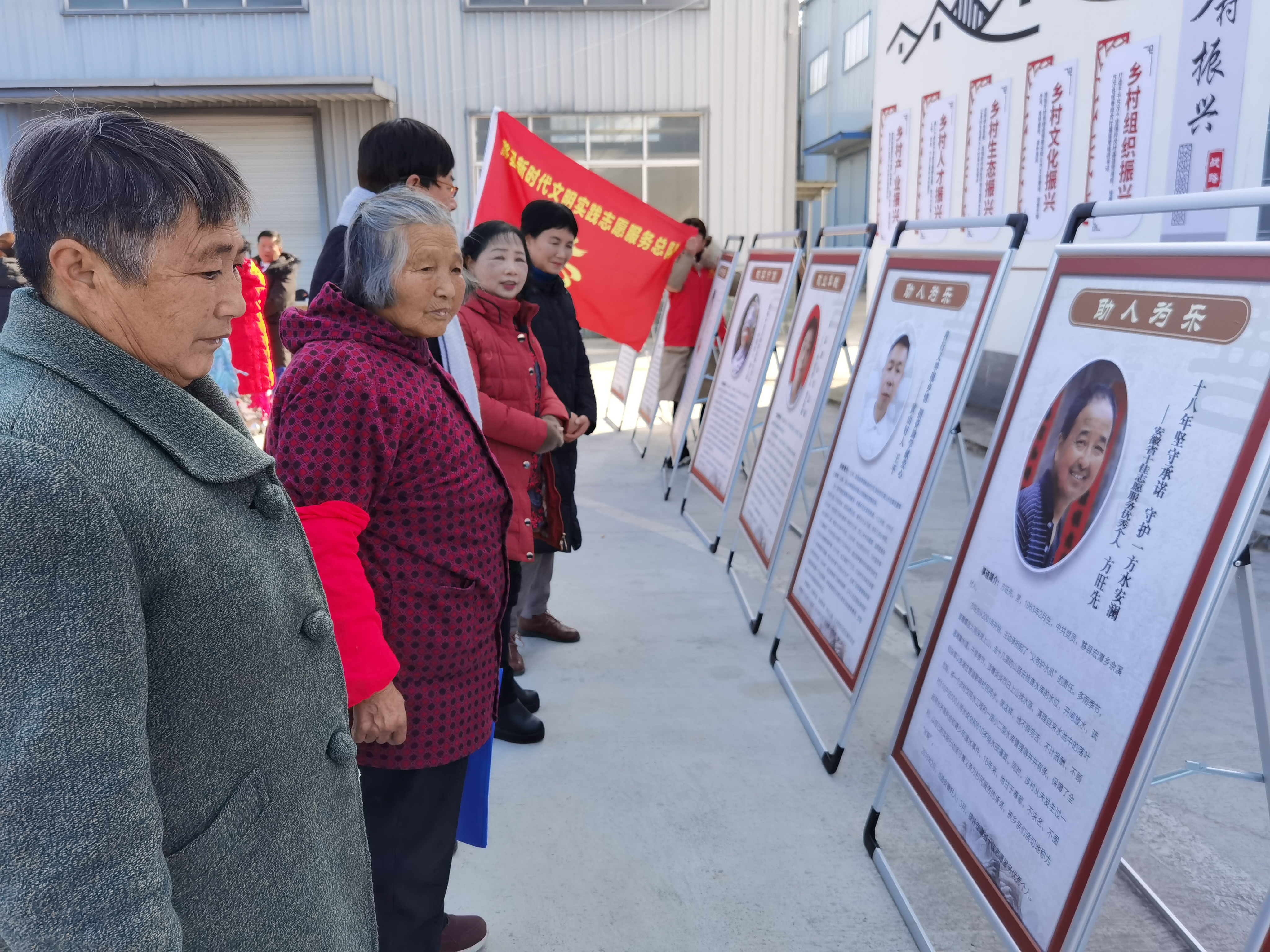 縣文明辦帶來的“道德模範與身邊好人”宣傳展板吸引眾多村民前來駐足觀看。