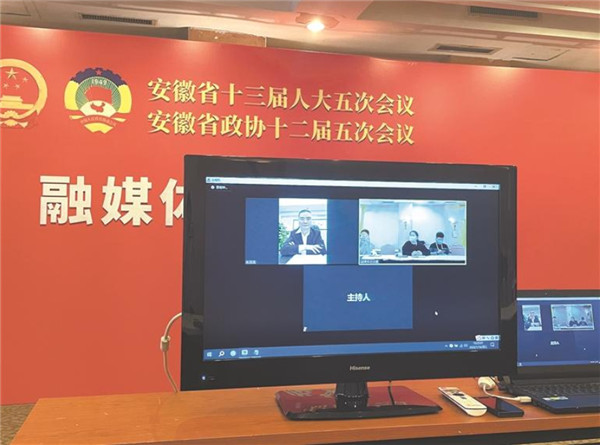 1月18日下午,在疫情防控常態化形勢要求下,安徽省政協十二屆五次會議創新形式,首次採用線上視頻連線方式,邀請香港、澳門地區省政協委員朱浴龍、何敬麟、楊俊光在兩會融媒體訪談室接受記者的集中採訪。