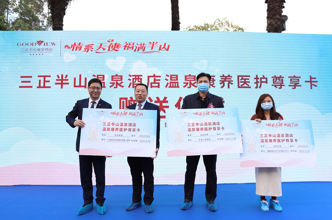 20日,「情系天使,福滿半山」活動在廣東省東莞市塘廈三正半山溫泉酒店舉行。據悉,東莞去年歲末爆發「12.13」新冠肺炎疫情,塘廈鎮共有437名醫護人員奔赴大朗支援抗疫,為感謝抗疫醫護人員英勇付出,今次活動塘廈三正半山溫泉酒店向支援大朗抗擊疫情的塘廈醫護天使贈送價值650多萬元的溫泉康養醫護尊享卡,享受「百日免費泡溫泉」的專享福利。