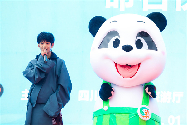 活動現場,四川文旅宣傳推廣大使丁真「空降」現場與「安逸」熊貓人偶共同送出新年祝福;作為主角的「安逸」也首次以視頻的方式推介了成都美食、自貢燈會、閬中古城等四川文化旅遊資源,邀請全世界的朋友來四川玩耍。