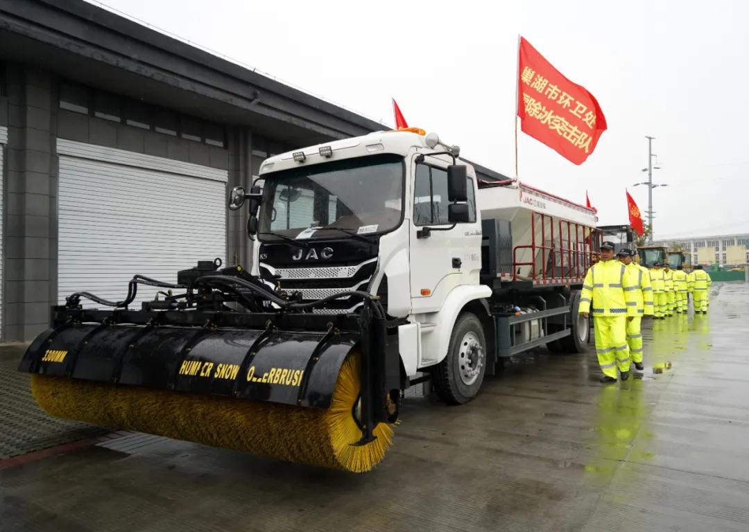 安徽省巢湖多個部門「聞雪而動」,迎戰雨雪冰凍天氣。市城管局第一時間做出響應,提前安排部署。城管系統內成立由城管執法人員、環衛作業人員組成的兩支應急隊伍,以及兩支社會力量組成的專門應急隊伍,儲備融雪劑、防滑鏈、械化作業鏟車和各類運輸車等鏟雪除冰應急工具,以及公共安全警示標識標牌;城區環衛工人和保障車輛以雪為令、隨時應召。