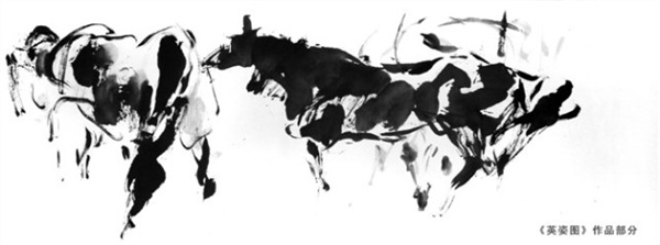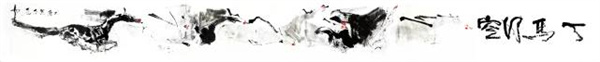 據悉,67歲的馬力以自創的大寫意「刀筆法」著稱,他畫的馬有兩種基本手法,一種是墨塊潑染,另一種是線條書寫。馬力的畫作造型極其抽象、着墨簡明、留白大膽、墨色溫潤、濃淡有致、過渡平和、光點分明,他畫的馬博大、宏偉、氣韻生動,體現了大氣、大美的中國馬的大境界。更為不同的是,馬力畫的「馬」是新中國成立以來,幾個不同發展時期的「馬」,內涵了新中國不同發展時期的「時代精神」,記錄了新中國奮發圖強的光輝歷程,體現了中國從「站起來」、「富起來」到「強起來」的奮勇向前的精神風貌,是中國時代精神的輝煌寫照。