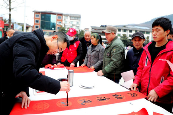 在春節即將到來之際,為弘揚中華優秀傳統文化,營造喜慶祥和的春節氛圍,連日來,四川省平武縣文聯積極組織文化藝術工作者通過義寫春聯、福字,剪窗花、送書籍等方式開展文藝惠民活動。據悉,是次活動共送出春聯600餘幅,「福」字300餘張,書籍200餘冊。