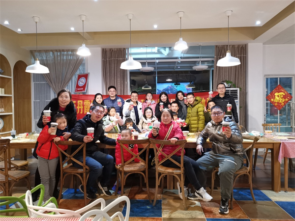 在丹霞山各大網紅民宿,年味氛圍十足,以家庭式出遊的遊客們歡聚一堂,大家一起寫春聯,吃年夜飯,聊家常……畫面特別溫馨。