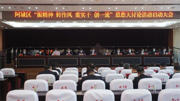 區委書記孫釗指出,區委召開「振精神、轉作風、重實幹、創一流」思想大討論活動啟動大會,主要目的是動員全區各級黨組織和全體黨員進一步堅定發展信心、凝聚思想共識,加快推動阿城全面振興全方位振興。