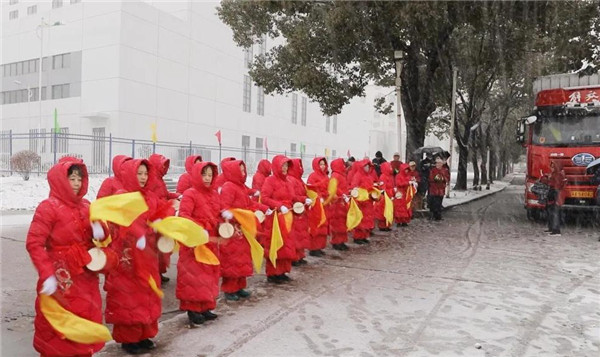 8時許,發車儀式正式開始。在隆隆的腰鼓聲中,一輛輛貨車陸續駛出公司,踏上2022年新征程。