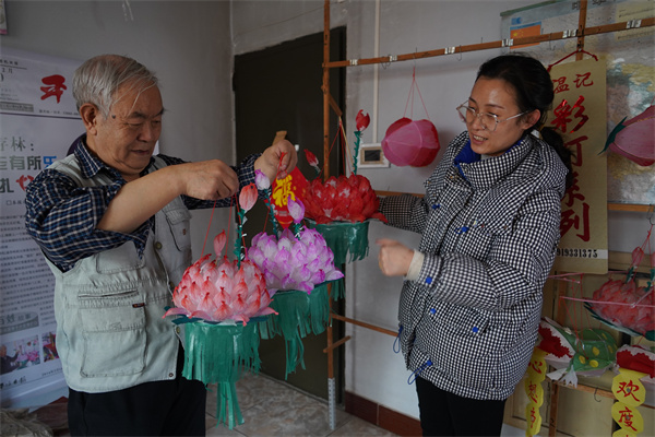 蓮花燈、猴擀麵燈、長毛兔燈、石榴燈、蟾鬧蓮燈、水蜜桃燈……今年73歲的溫存林是甘肅省平涼市民間手工藝人溫記彩扎燈籠的第三代傳人,他堅持在每年春節期間做手工彩扎燈籠近50年。今年元宵節來臨之際,他又創新紀錄,製作了虎王燈、蟾鬧蓮燈、紅草莓燈5個種類的創新燈籠,3個種類的傳統燈籠慶祝元宵佳節。
