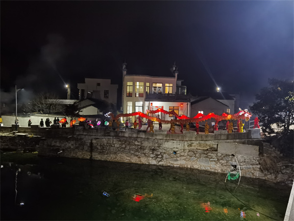 元宵佳節到來之際,人們賞花燈、看表演、嘗美食,皖南黟縣處處洋溢著幸福喜樂的節日氛圍。2月15日晚6時許,宏潭村村委會鑼鼓陣陣,一派熱鬧祥和的喜慶氛圍。宏潭村傳統民俗表演——龍獅燈會在雄壯震耳的鑼鼓聲中隆重登場。