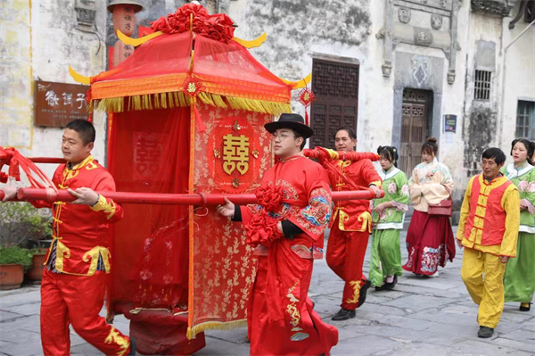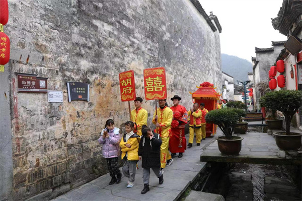 文化是旅遊的靈魂,旅遊是文化的載體。近年來,旅遊業市場結構進一步優化,與優秀文化融合程度不斷加深。安徽黃山市黟縣以文塑旅、以旅彰文,不斷推出高質量的文旅融合產品,詩和遠方走到一起有了新突破。被列入世界文化遺產名錄和世界最佳旅遊鄉村的安徽黟縣西遞古村,推出徽州傳統婚慶習俗“拋繡球”展示等民俗活動,人氣滿滿受到了廣大遊客的青睞。