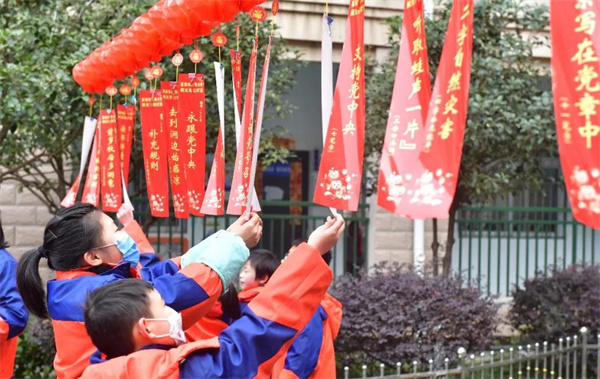 2月16日,安徽省巢湖市中小學、幼兒園春季開學首日,各校開展了豐富多彩的「開學第一課」活動。升國旗、猜燈謎、製作虎頭帽……孩子們還打起腰鼓唱起歌。