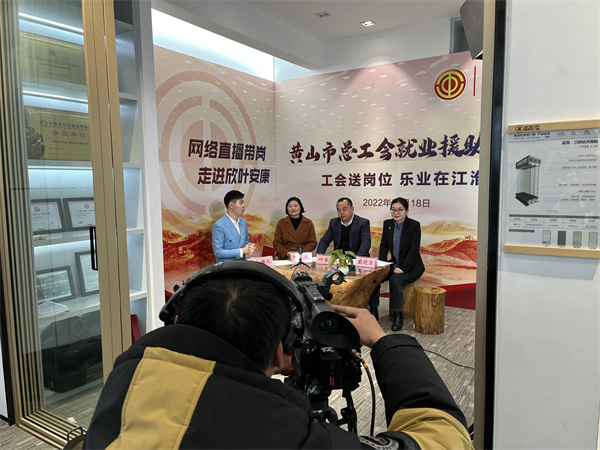 為更好地解決企業用工難的問題,2月18日上午,安徽黃山市總工會打破傳統的現場招聘模式,深入黃山市高新區的安徽欣葉安康門窗幕牆股份有限公司,開展“沉浸式”的直播招聘。據不完全統計,這次直播招聘線上近500人點贊,線下諮詢電話50多次,有8人表示將按照程式投招聘簡歷。