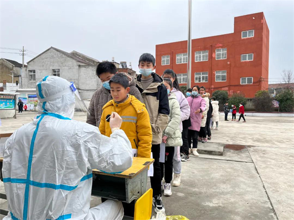 為切實做好2022年春季師生返校疫情防控工作,在巢湖市蘇灣鎮,做到早謀劃、有秩序、分批次合理開展全體師生員工核酸檢測,嚴把校門入口關。2月14日下午,返校前師生員工核酸檢測工作準時開展。在檢測現場,鎮村幹部對學校門口、出入通道、操場排隊、信息登記收集、檢測點設置等環節進行了認真組織管理,師生員工有序、快速地進行核酸檢測,切實做到人員不扎堆,不聚集。