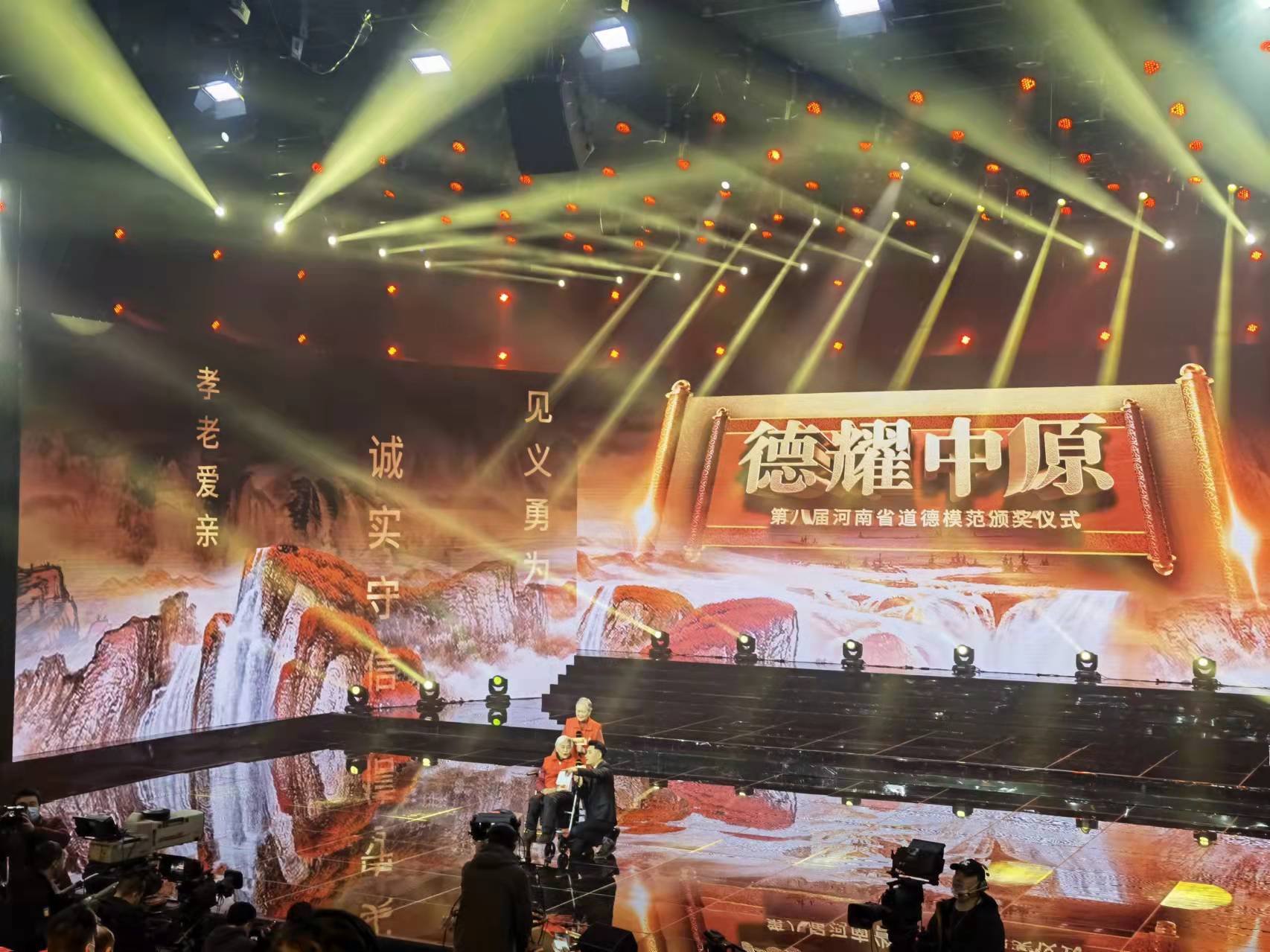 2月22日夜晚,河南廣播電視台1500平米演播廳張燈結綵,座無虛席,「德耀中原——第八屆河南省道德模範頒獎儀式」在這裏隆重舉行,河南省委常委、宣傳部部長、河南省文明委副主任王戰營,河南省政協黨組副書記、副主席、河南省文明委副主任周春艷,河南省軍區副政委兼紀委書記、河南省文明委副主任劉金來出席會議,與嘉賓、媒體記者和近十四位道德模範齊聚一堂,共同見證承優傳良、崇德向善的動人旋律。