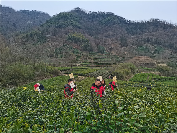 “鶯飛草長二月天,正是茶園管護時”。2月22日,安徽黃山市黟縣柯村鎮組織機關黨員幹部開展“我為群眾辦實事·助農幫插黃板”志願服務活動。插放粘蟲黃板是该鎮落實茶園綠色防控、創建全域茶園無農殘城市的一項重要舉措,也是提高茶葉品質的一項重要具體行動,預計2月底前完成鎮域內8962畝茶園的黃板插放,共計插放黃板38.5萬張。