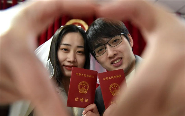 截至當日中午,共有110對新人辦理了結婚登記手續。(馬豐成 王亮禮 龔舒斌)
