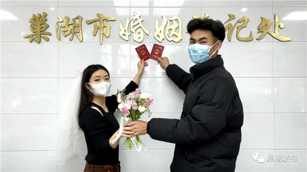 當日一大早,安徽省巢湖市民政局婚姻登記處,一對對新人滿懷憧憬前來辦理結婚登記,讓這美好的日子見證他們的愛情。