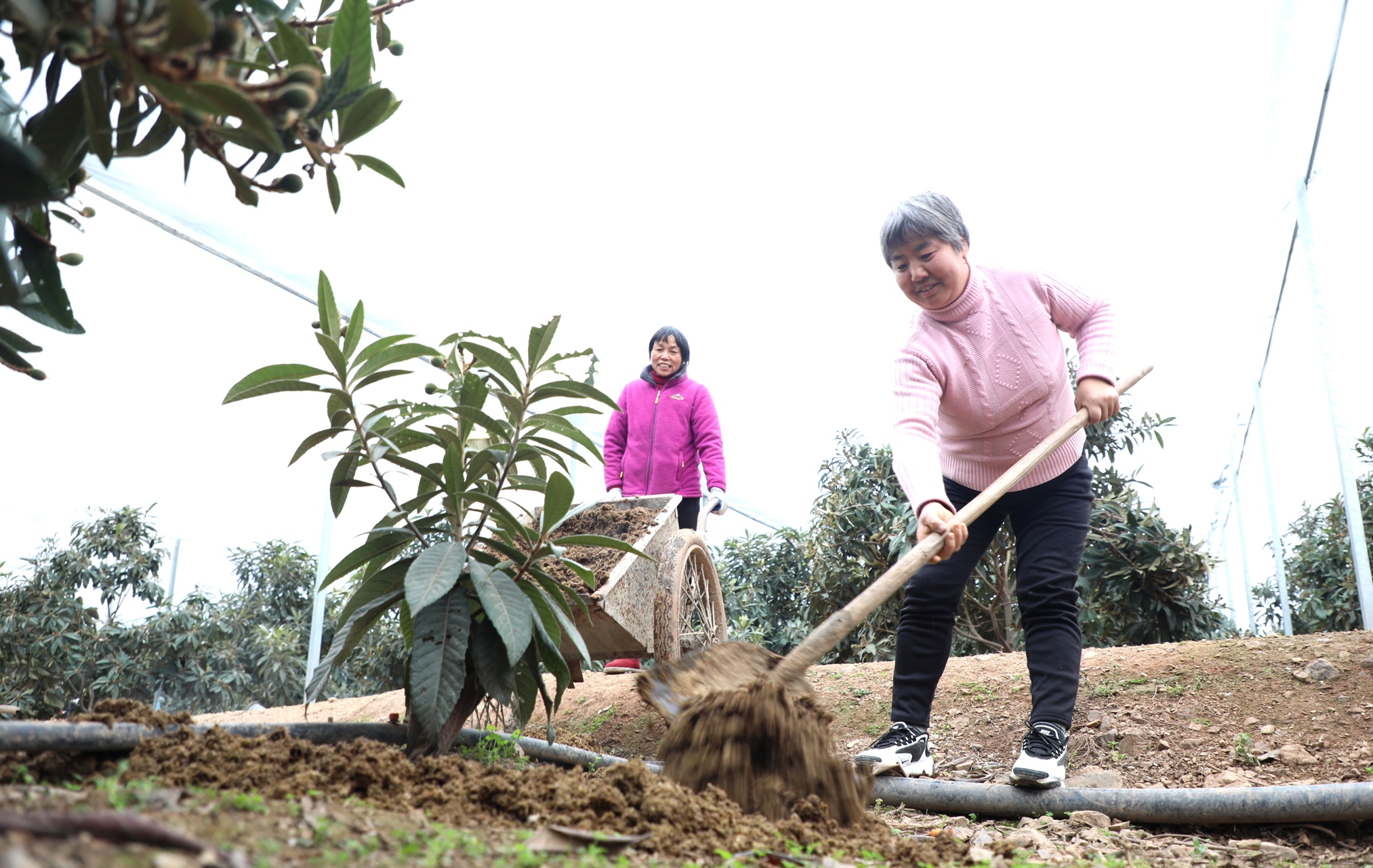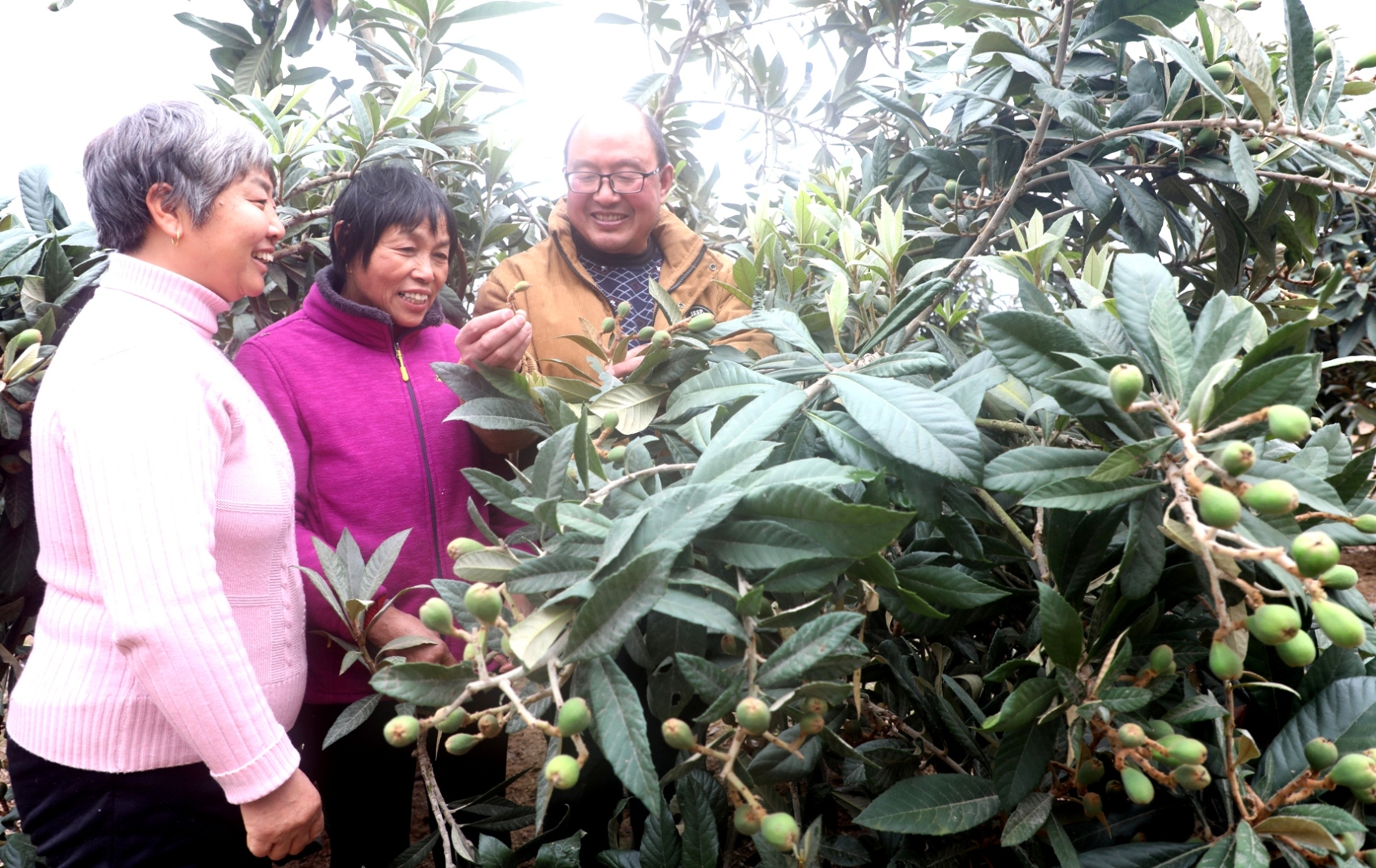 人勤春來早。連日來,走進安徽黃山市歙縣的田間地頭,總會看見忙碌的身影,村民們正用自己的辛苦勞作,期待著今年能有好的收成。2月21日,安徽歙縣桂林鎮竦口村黃山盛景生態農業有限公司枇杷園內,公司負責人吳紅霞(左一)邀請安徽行知學校農技教師吳雲貴(右一)傳授枇杷掛果期管理技術。