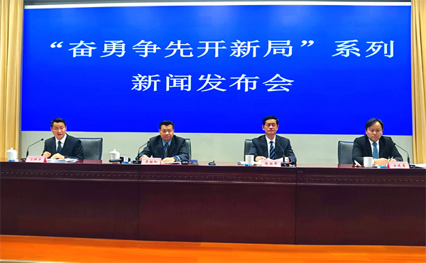 「奮勇爭先開新局」系列新聞發佈會(第十五場):奮力譜寫住房城鄉建設事業高質量發展新篇章新聞發佈會,左起:安徽省委宣傳部新聞發佈處處長汪曄宇主持發佈會,省住房城鄉建設廳副廳長吳桂和,副廳長陳揚年,總工程師方延勇先後介紹相關情況(孫軍 攝)