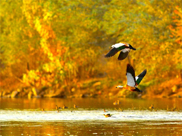 冰消融,水淙淙。而提前預知這一切的不僅天氣預報,更有一群可愛的赤麻鴨。23日下午,攝影愛好者鄧憲忠用鏡頭記錄下位於瀋陽鐵西區翟家街道後謨村渾河閘口附近的「鴛鴦戲水」圖,這正映了那句古詩「竹外桃花三兩枝,春江水暖鴨先知」,想必詩人蘇軾也是看着這樣的美景後有感而發的吧。