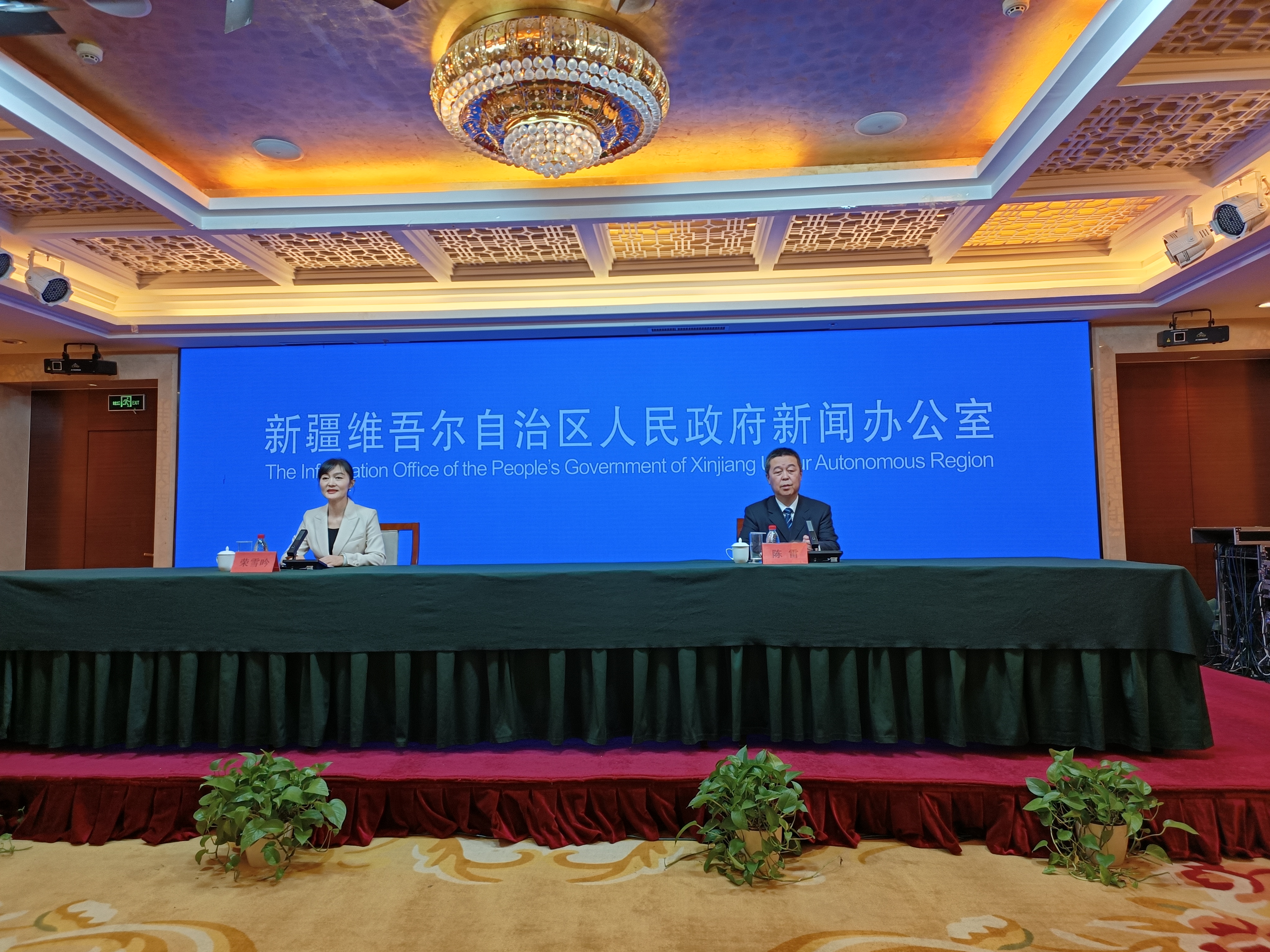 2月25日,新疆維吾爾自治區人民政府新聞辦公室舉行的「新疆鞏固拓展脫貧攻堅成果同鄉村振興有效銜接工作情況」新聞發佈會現場