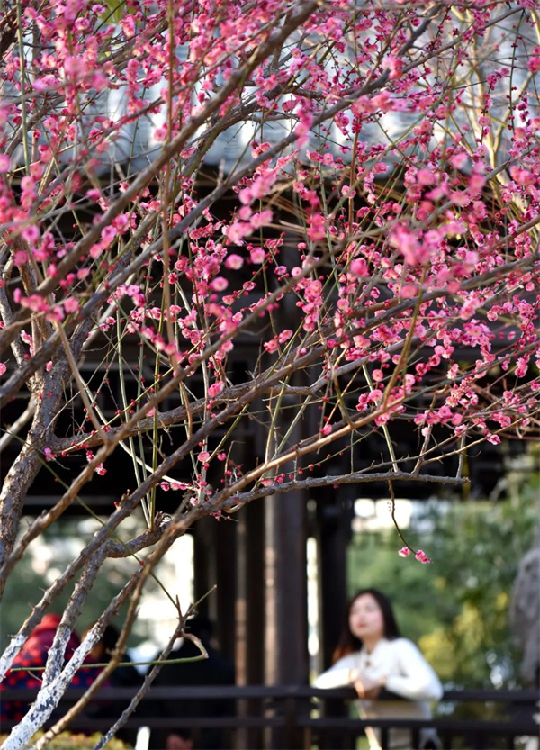 梅花迎風綻,美景醉遊人。當日下午,走進尋芳坡公園、愛巢公園、伴園等城區幾座口袋公園,一朵朵粉紅色的梅花躍然枝頭,嬌艷欲滴,清氣怡人。漫步在公園裡,可一邊行走鍛煉一邊賞美景。