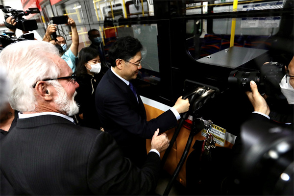 工厂参观结束后,Rex Parris陪同秦刚大使乘坐比亚迪纯电动大巴。过程中,秦刚对纯电动大巴的静谧性和平顺性印象深刻,Rex Parris也为秦刚详尽介绍了比亚迪如何改善当地居民出行方式。