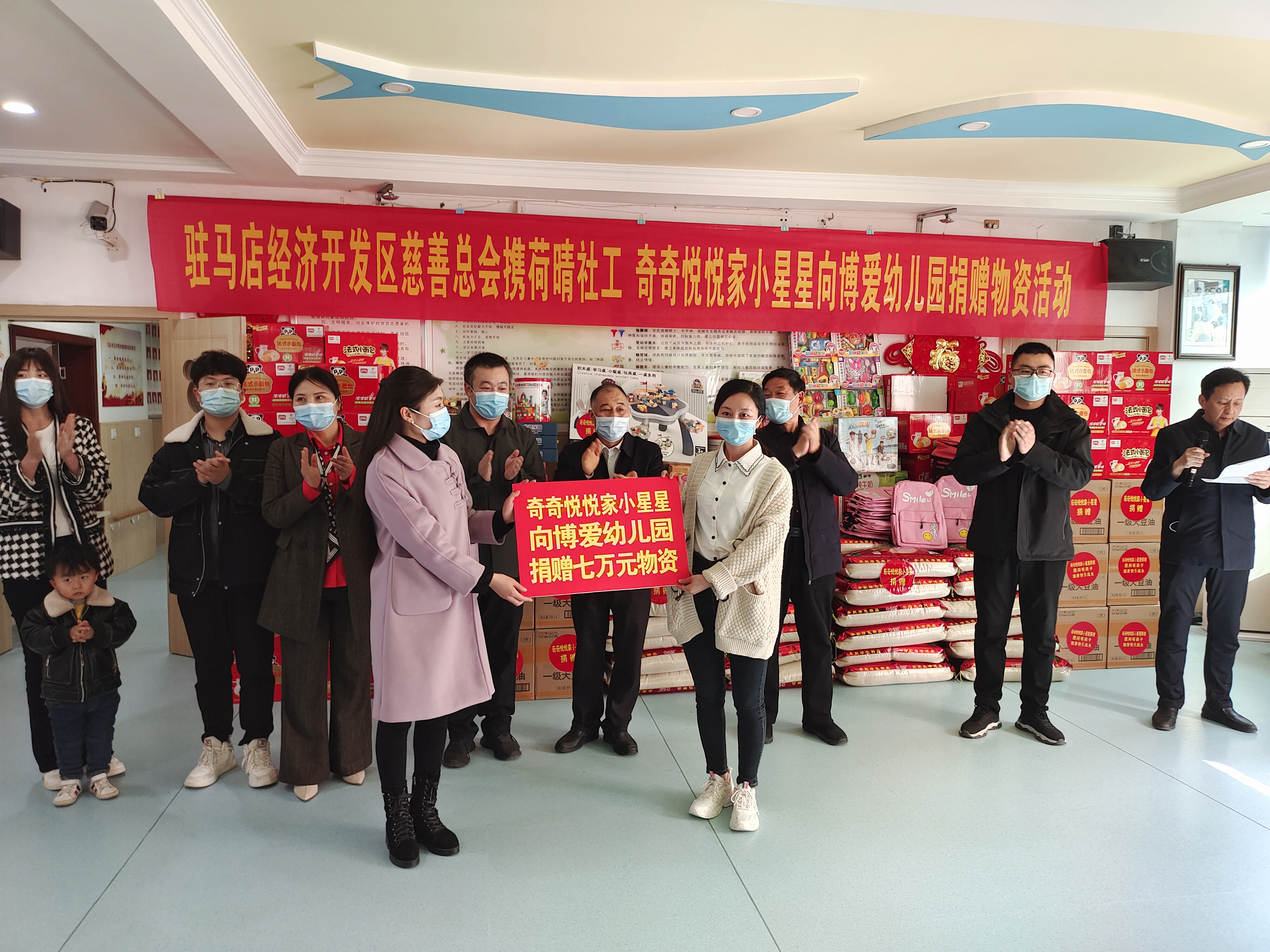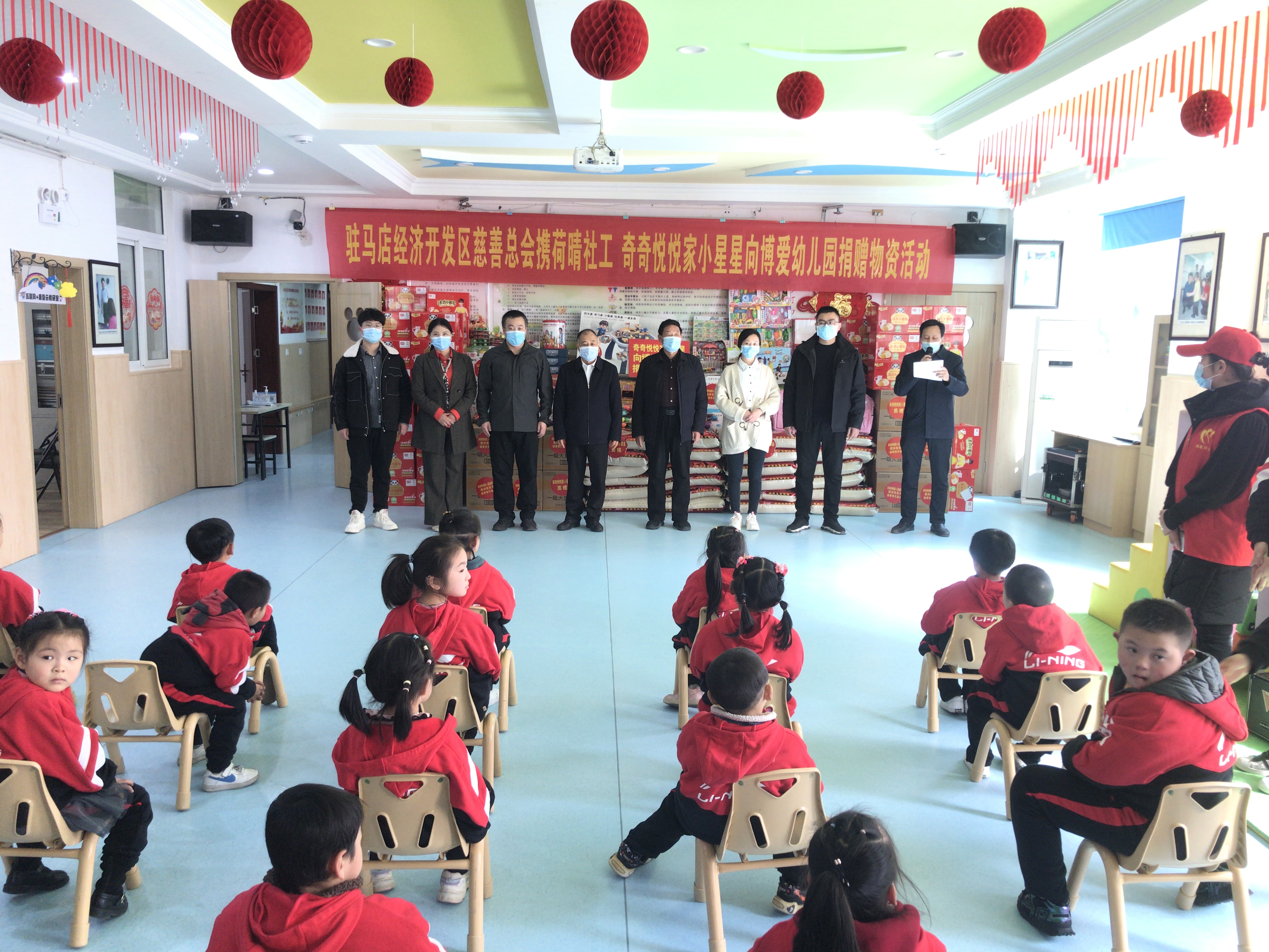 3月2日,在國際愛耳日來臨之際,河南省駐馬店市經濟開發區慈善總會攜荷晴社工、奇奇悅悅家小星星帶着愛心物資到市殘聯博愛幼兒園看望慰問在園兒童。駐馬店市政協副主席、市殘聯黨組書記、理事長張銀良、駐馬店經濟開發區慈善總會會長李如意、市殘聯黨組成員、副理事長徐達、荷晴社工白美娜、奇奇悅悅家小星星及博愛幼兒園部分教師、兒童參加活動。